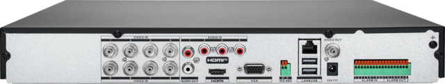 Profi-Überwachungszentrale für 8 Analog-HD Kameras. Einfach angeschlossen über Koax-Kabel an den BNC-Eingängen. Ohne Netzwerk oder Software. Bei Bedarf: 2 IP Kameras via Ethernet einbinden.