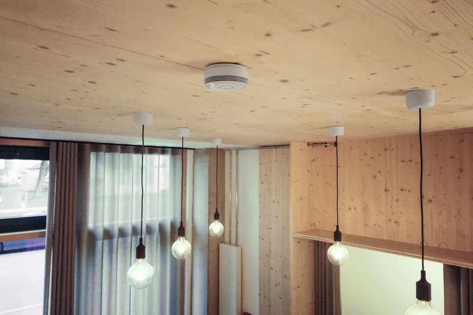 Reageert op de fijnste rookdeeltjes en beschermt werknemers en bewoners tegen dodelijke rookvergiftiging. Met lokaal alarm bij de rookmelder en brandalarm in het hele gebouw (inbraakalarmsysteem)