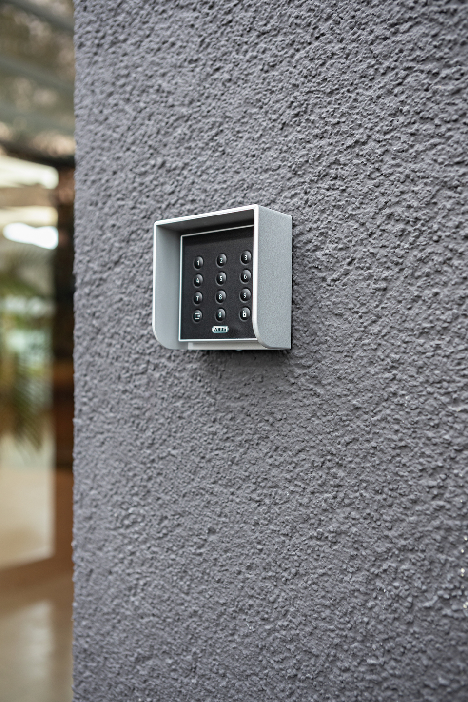 Im Außenbereich: Das Secoris-Einbruchmeldesystem bedienen, schärfen und entschärfen. Einfach per RFID-Chipschlüssel oder PIN-Code-Eingabe. Tastenleser kann eine Außenschärfungseinheit (ASE) ersetzen.