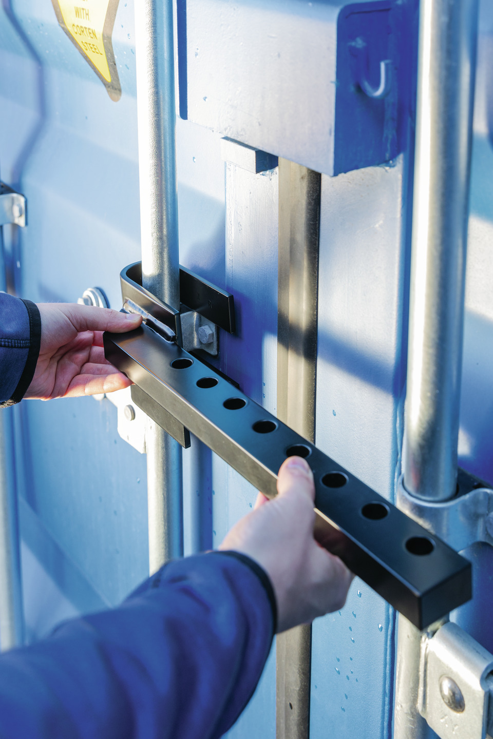 Flexibel einsetzbar, widerstandsfähig und wetterfest: Das ConHasp 205 aus Stahl ist ein abnehmbares Containerschloss, welches unkompliziert und temporär an wechselnden Containern angebracht werden kann – ganz ohne Löcher zu bohren.