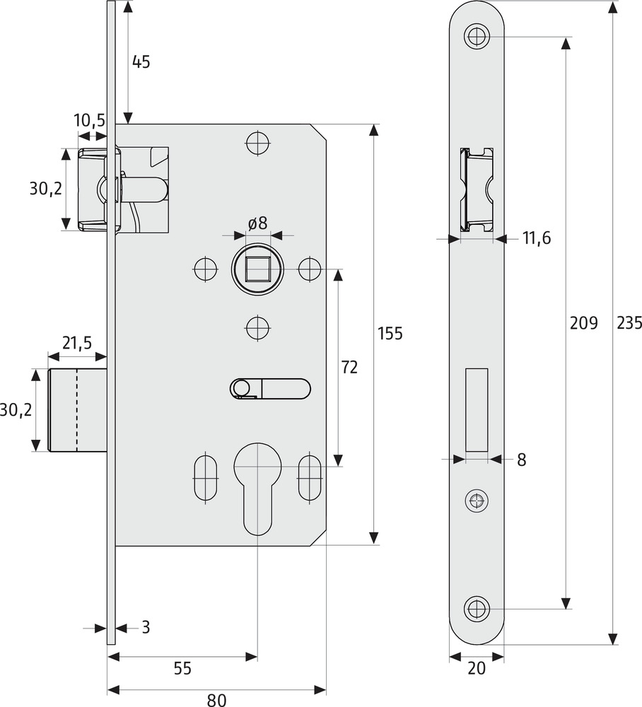 - Schlosskasten 155 x 80 mm