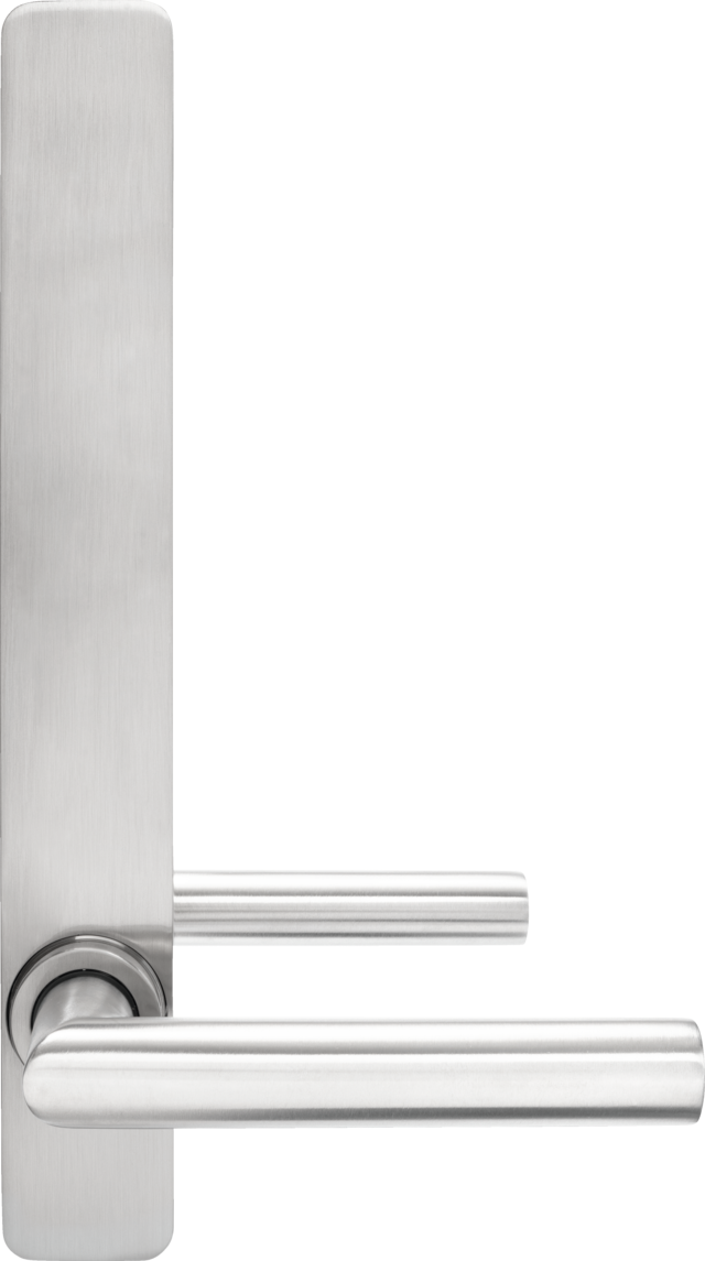 - Valgfrit tilbehør: Adapterplade til visuelt harmonisk udskiftning af brede beslag (54 mm) eller runde beslagsæt samt renoveringsplader til at dække borehuller eller aftryk fra gamle beslag (f.eks. på kontordøre).