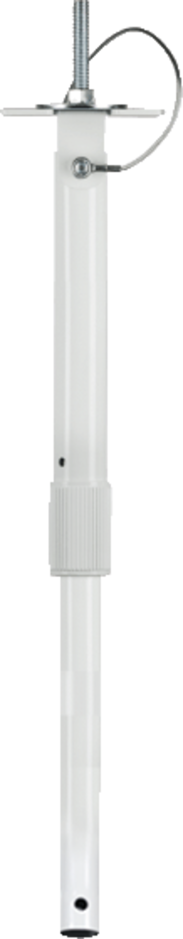 The optional mounting plate (TVAC32100) is used to securely attach the bracket to the ceiling in a space-saving manner. The extendable bracket can be adjusted in height from 1.2 m to 3.34 m. This allows the position and distance of the camera from the ceiling to be adjusted to suit the individual installation situation. The cable guide integrated into the bracket ensures a clean and professional installation, including optimal protection of the connection cable from moisture, damage or tampering. The bracket's suspension can be rotated so that it can also be installed on sloping ceilings and suspended vertically downwards.