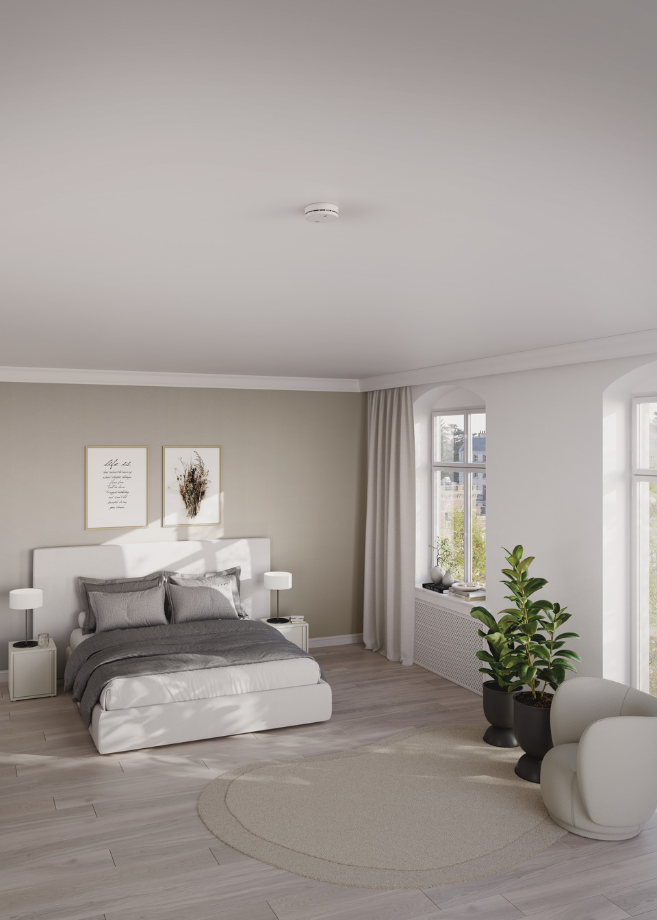 - Simple screw mounting: the alarm's mounting plate is attached to the ceiling with screws and dowels (included in the scope of delivery)
