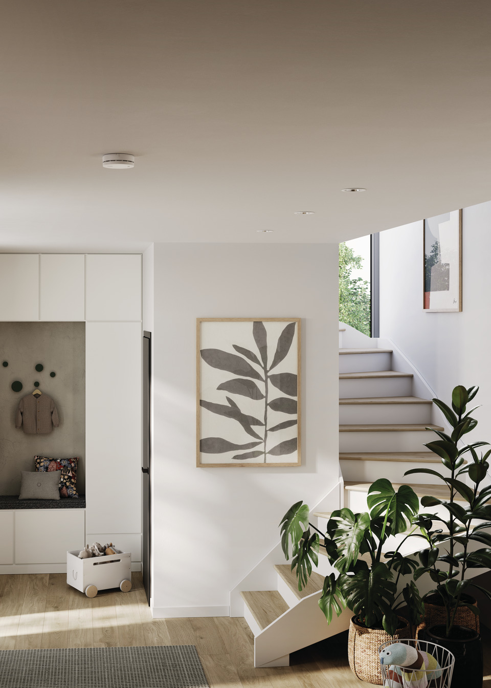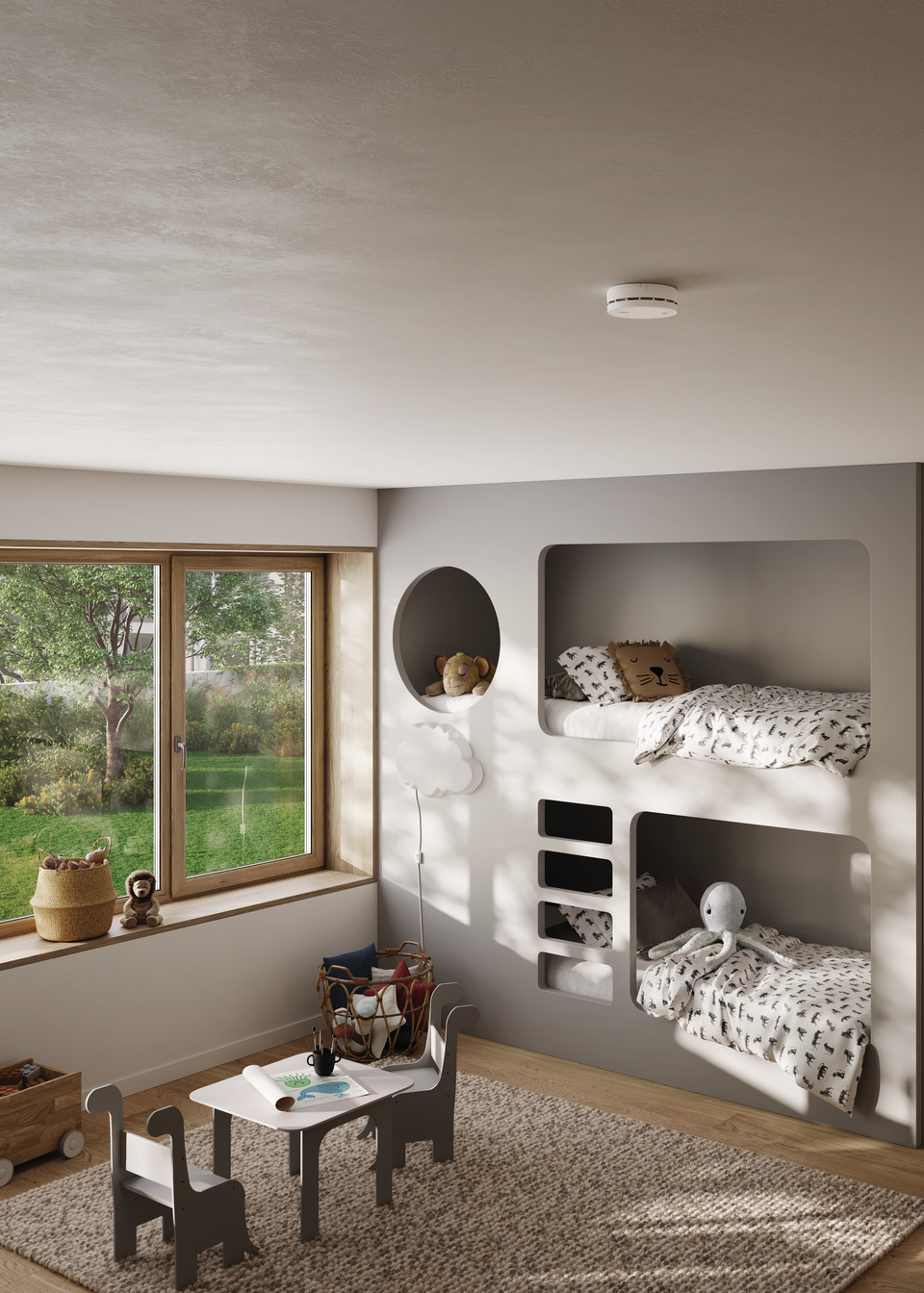 - Smoke alarm function: the alarm detects visible smoke particles in the air and triggers a loud alarm in the event of danger – for an early warning in the event of fires