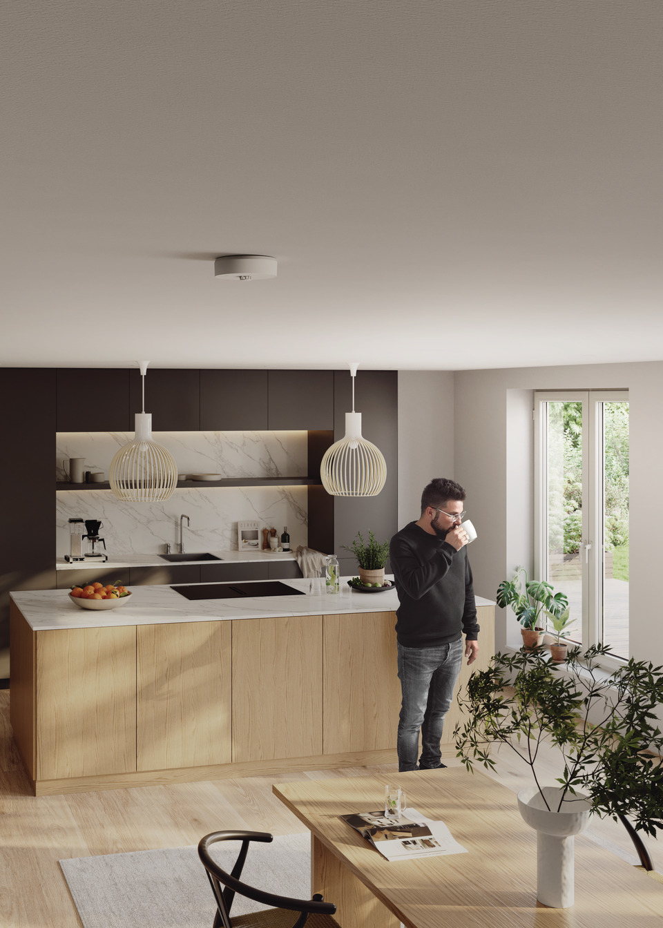 - Suitable for kitchens and bathrooms: the kitchen-safe detector reacts to heat – no false alarms due to steam or cooking vapours thanks to the heat alarm function instead of smoke detection