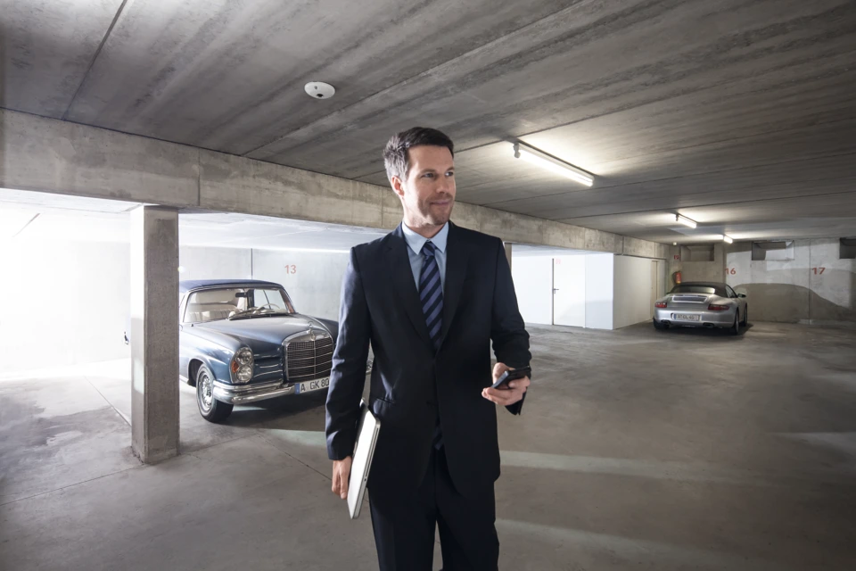 De voor buitentoepassingen (temperatuurbereik -25° tot +60°) geschikte camera kan gebruikt worden om activiteiten van bovenaf te observeren. Met de heatmap-functie kunnen personenstromen worden geanalyseerd, bijvoorbeeld in de detailhandel. De geïntegreerde IR's hebben een reikwijdte van ca. 15 meter en zorgen ook ‘s nachts voor een duidelijk videobeeld. Door Power over Ethernet (PoE) wordt de installatie vereenvoudigd. Met de luidspreker en de ingebouwde microfoon is bovendien via de webinterface van de camera en een op de computer aangesloten microfoon een Two-way-audiocommunicatie mogelijk.