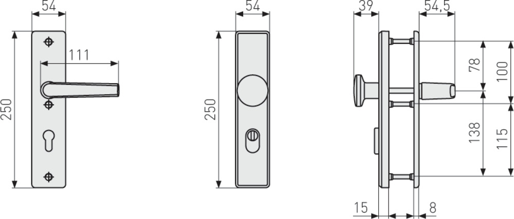- Rozstaw klamka/wkładka: 92 mm, kwadrat: 10 mm