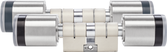 - Electronic double knob cylinder with Mifare reader: Read protected wireless connection between transponder and cylinder (Mifare Desfire EV1 in secure mode)