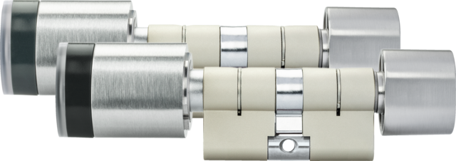 - Electronic double knob cylinder with Mifare reader: Read protected wireless connection between transponder and cylinder (Mifare Desfire EV1 in secure mode)
