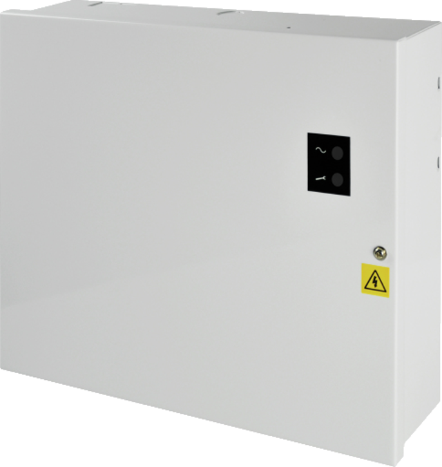 The performance power supply unit is designed for indoor use. A lid contact allows monitoring the device and protecting it from potential tampering activities. Pre-cut perforations on the side of the housing enable customized openings for tidy wiring. The LED control indicator informs you constantly about the state of the power supply unit. The 8 outputs are individually fused and protected from overload and short-circuit.